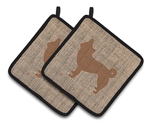 Caroline's Treasures Chihuahua Faux Burlap & Brown Pair of Pot Holders BB1068-BL-BN-PTHD, 7.5HX7.5W, Multicolor