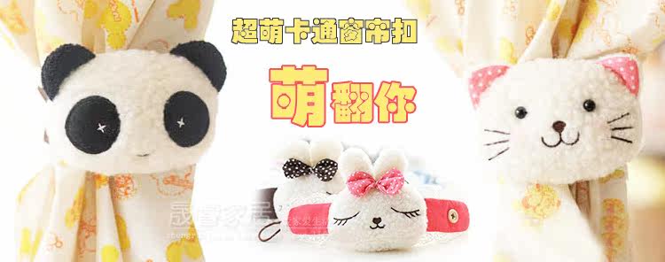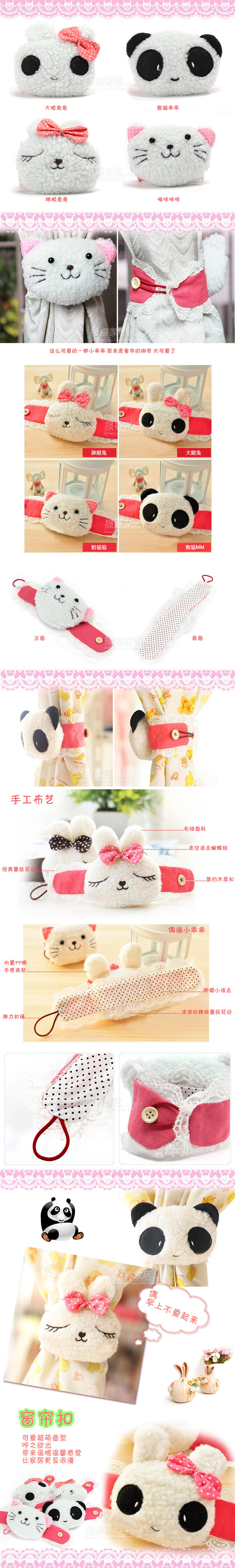 Pink cute cartoon animal shaped plush curtain buckle? super adorable panda? cat and rabbit Ming shape? very likable? warm colors plus romantic and beautiful lace? simple small buckle? to put on one of your home layer romantic beautiful colors? in addition to the curtains? but also tied to other things you need to tie Oh? one is a button? one end of the rubber band? very simple to use? just put the rubber band on the button to a deduction? you need to be tied to the fixed nature articles of