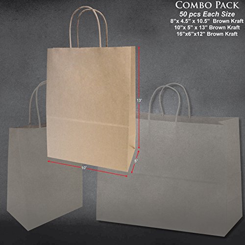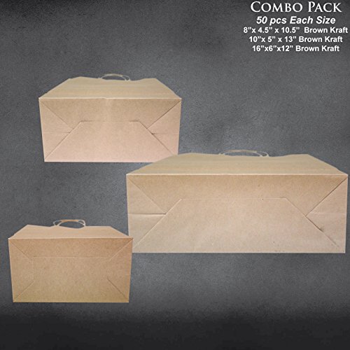 8"x4.75"x10"-10"x5"x13"-16"x6"x12" - 50 Pcs Each - Bagsource® Brown Kraft Paper Bags 95% POST CONSUMER MATERIALS & FSC CERTIFIED
