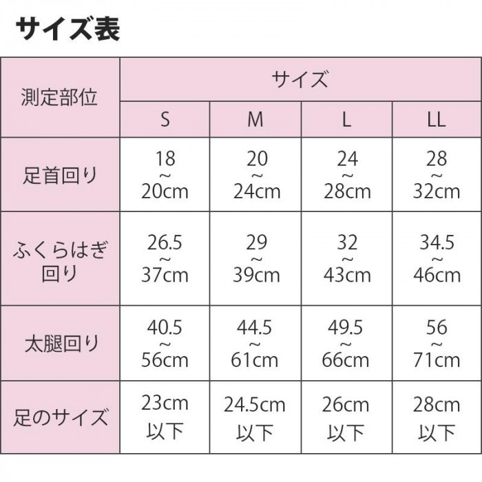 | 仕様 | 爪先タイプ:爪先なし、圧迫:中圧(30~40mmHg/40~53hPa)、一般医療機器/製造販売許可番号:13B3X90009000001 メーカー:株式会社リムフィックス |