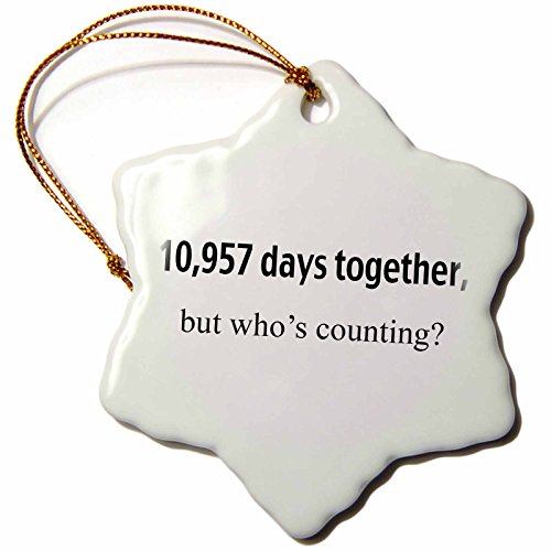 3dRose orn_112213_1 10,957 Days Together But Whos Counting Happy 30th Anniversary Snowflake Hanging Ornament, 3-Inch, Porcelain