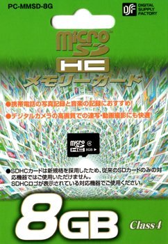 -. Feature : 携帯電話の写真記録や音楽の記録などにもおすすめです / 容量:8GB 規格:microSD Memory Card SpecificationVer.2.0準拠 / 転送速度:CLASS 4 電源電圧:2.7~3.6V 外形寸法:幅11×長さ15×厚さ1.0mm 質量:約0.4g / 動作温度:温度0~55℃、湿度20~80%(結露なきこと) 付属品:保証書 / ※対応機器/SDHCロゴが機器または取扱説明書に表示された機器でのみ使用可能です。 / 従来のSD規格とは互換性がありませんので、SDメモリーカードのみに対応した機器では使用できません。 / ※ 注意・使用する機器、ファイルのサイズ等の条件によって転送速度が異なります。 / ・このSDHCカードには著作権保護機能用の領域が含まれており / お客様が実際にご利用いただける容量は8GBより少なくなります。