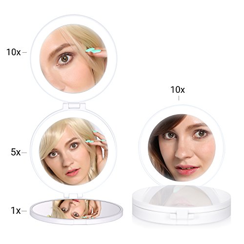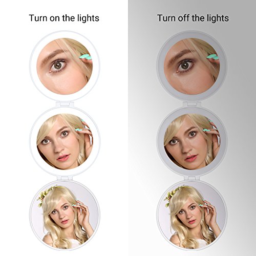 PORTABLE LIGHTING: Compact, delicate makeup mirror with built-in LEDs. Fits easily into handbags for flawless makeup application on-the-go, in any lighting.