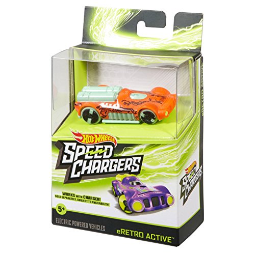 -. Binding : Toy -. Brand : Hot Wheels -. EAN : 0887961374452 -. Feature : Hot Wheels Speed Chargers vehicles are high-speed, electric-powered, motorized vehicles for exhilarating races and EPIC stunting action • These electric-powered super-rides charge for 10 seconds to hit scale speeds over 300 mph and race times over 2 minutes! • Place your Speed Chargers vehicle on the charger (sold separately) and press down for 10 seconds and then release the vehicle onto the track for awesome races with friends -. IsAdultProduct : 0 -. Label : Mattel -. Manufacturer : Mattel -. Model : DVT40 -. MPN : DVT40 -. PackageQuantity : 1 -. PartNumber : DVT40 -. ProductGroup : Toy -. ProductTypeName : TOYS_AND_GAMES -. Publisher : Mattel -. Studio : Mattel -. Title : Hot Wheels Speed Chargers- Orange eRETRO ACTIVE -. UPC : 887961374452