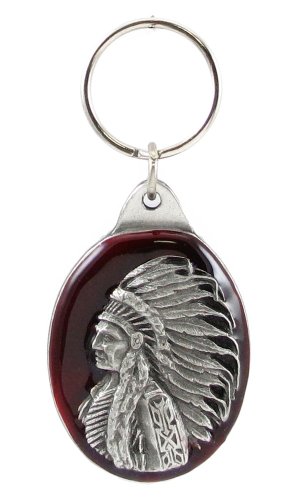Pewter Key Ring - Indian Chief - Red