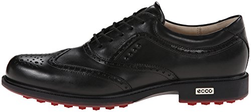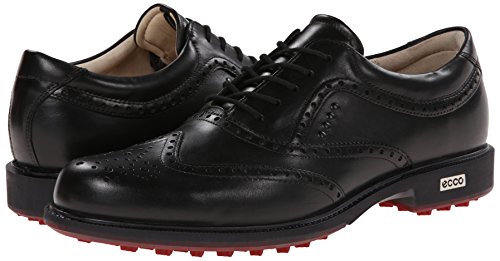 -. Feature : Combine style with function in this professionally-designed, lace-up golf shoe with rich leather uppers for comfort and durability. / ECCO Hydromax® technology ensures high water-resistance, making it suitable for all weather conditions. / Second skin leather lining provides a luxury feel and a healthy, breathable environment for your feet. / Superior traction for added movement comes with the hybrid technology outsole, giving 800 different angles and excellent grip. TPU traction bars, shown to last five times longer than rubber.