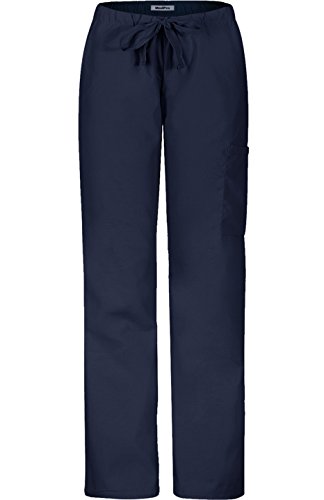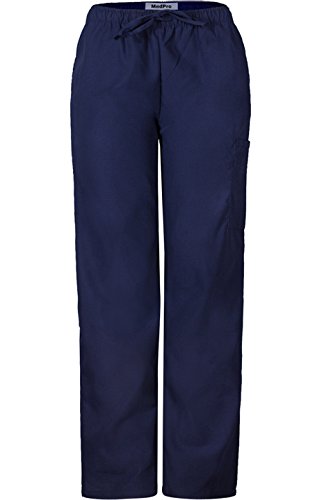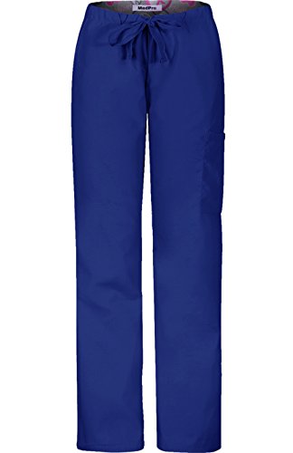 MedPro Women's Medical Scrub Set with Printed Wrap Top and Cargo Pants Navy Blue L