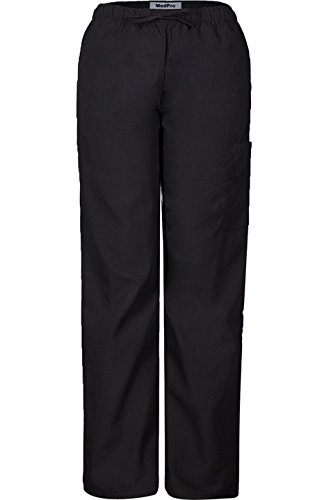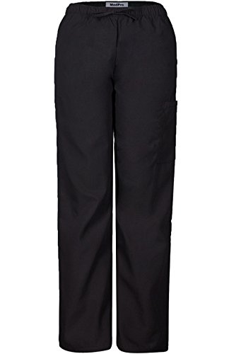 MedPro Women's Medical Scrub Set with Printed Wrap Top and Cargo Pants Black XL