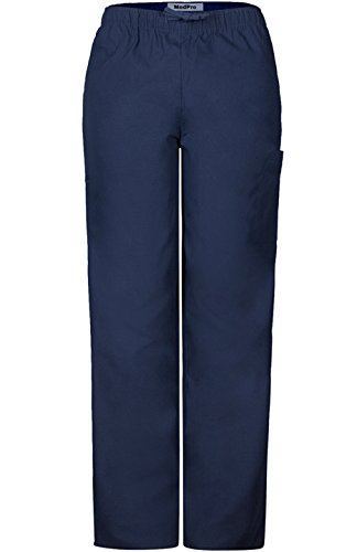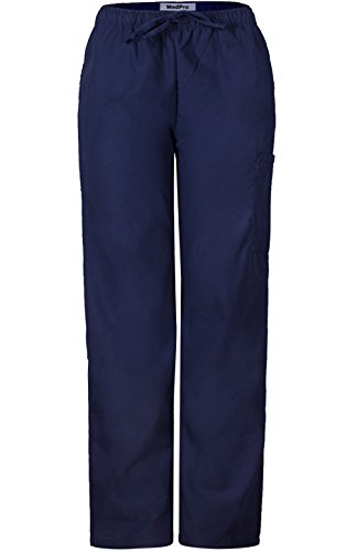 MedPro Women's Medical Scrub Set Printed V-Neck Top and Cargo Pants  Navy Blue L