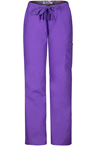 MedPro Women's Medical Scrub Set with Printed Wrap Top and Cargo Pants Purple L