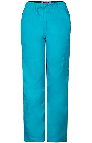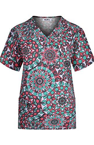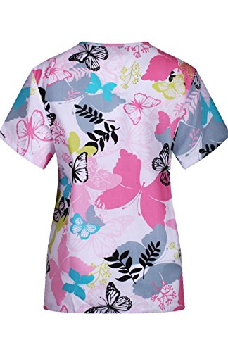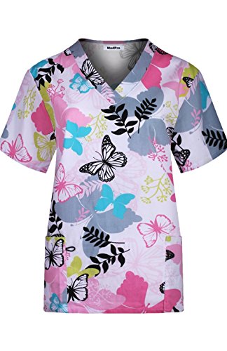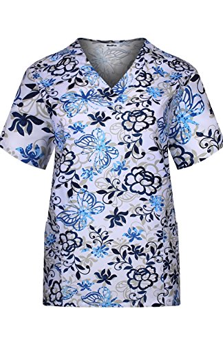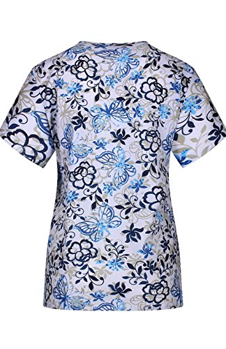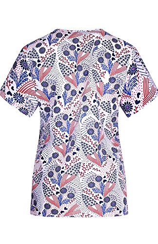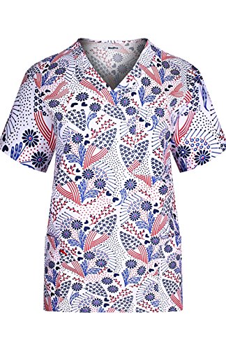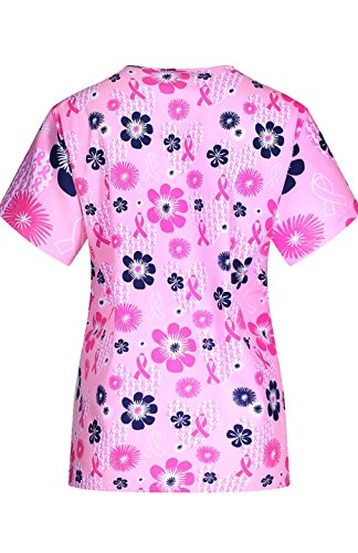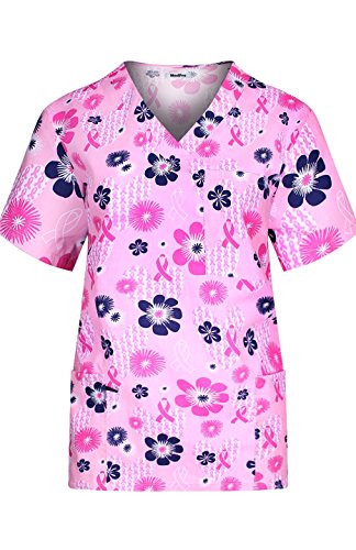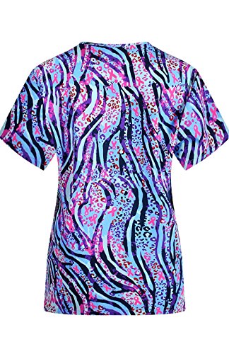 MedPro Women's Medical Scrub Set with Printed V-Neck Top and Cargo Pants Pink Blue XL
