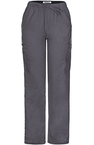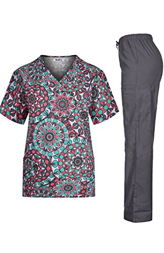 MedPro Women's Medical Scrub Set with Printed Wrap Top and Cargo Pants Grey XL