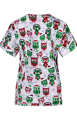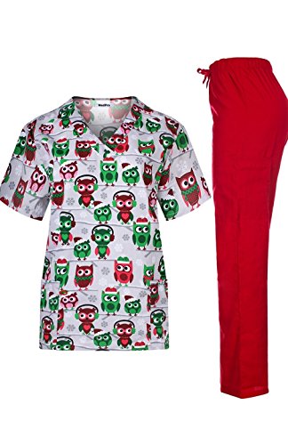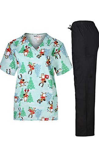 MedPro Women's Medical Scrub Set with Christmas Print V-Neck Top and Cargo Pants Green L