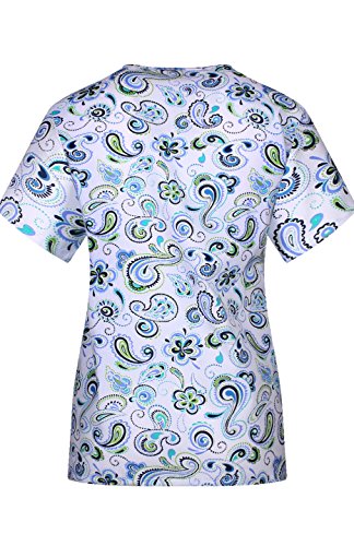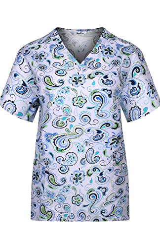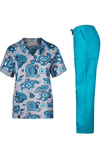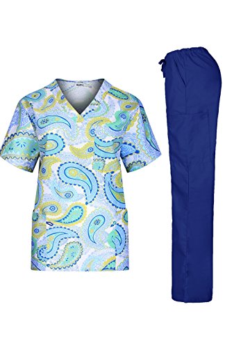 MedPro Women's Medical Scrub Set Printed V-Neck Top and Cargo Pants  Navy Paisley XL