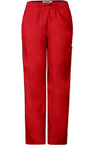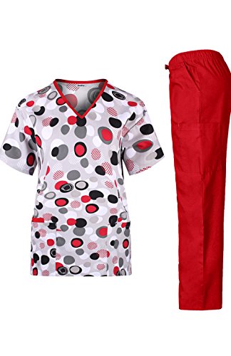 MedPro Women's Medical Scrub Set V-Neck Print Top and Cargo Pants Red Black L