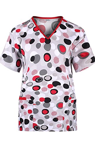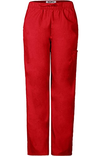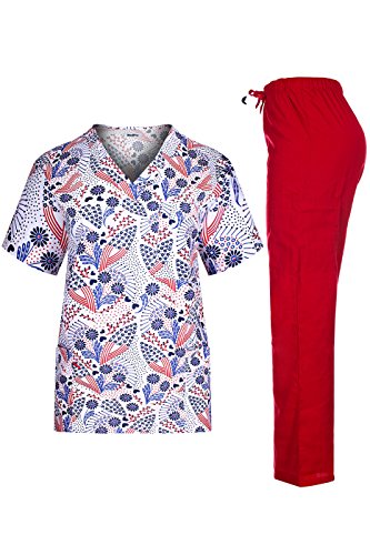 MedPro Women's Medical Scrub Set V-Neck Print Top and Cargo Pants Red Black S