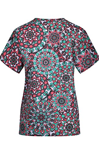 MedPro Women's Medical Scrub Set with Printed V-Neck Top and Cargo Pants  Orange Green 1XL (9004A-84)