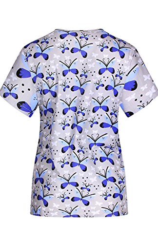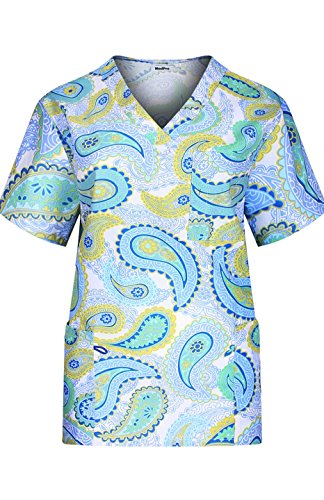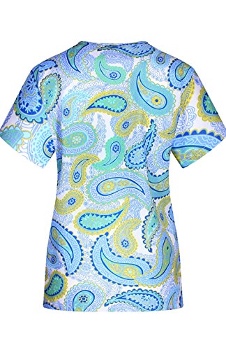 MedPro Women's Medical Scrub Set with Printed V-Neck Top and Cargo Pants Light Blue XL