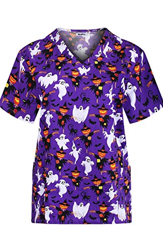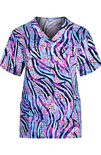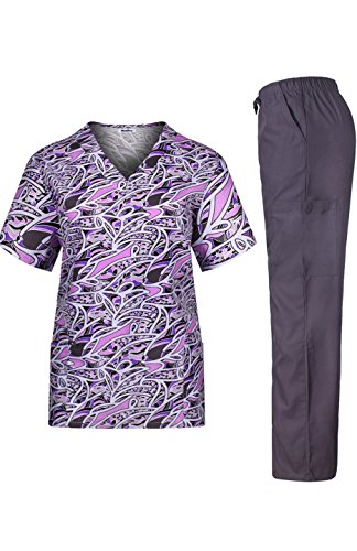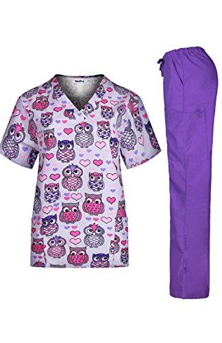 MedPro Women's Medical Scrub Set with Printed V-Neck Top and Cargo Pants  Purple 1XL (9004A-84)