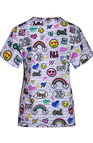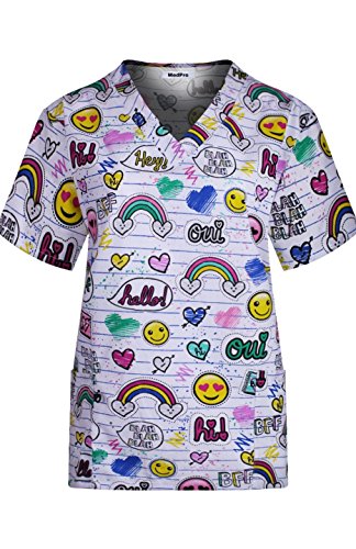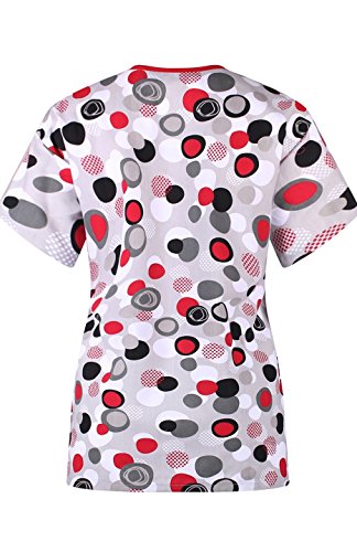 MedPro Women's Medical Scrub Set with Printed V-Neck Top and Cargo Pants  White Black 1XL (9004A-84)
