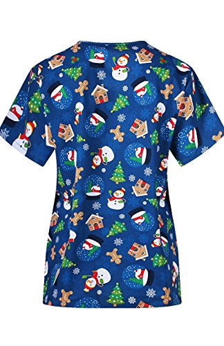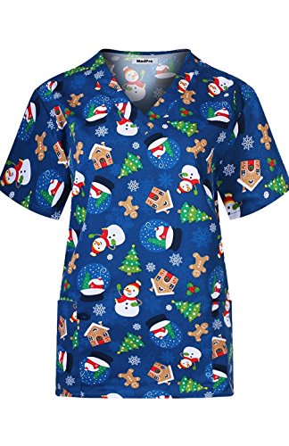 MedPro Women's Medical Scrub Set with Christmas Print V-Neck Top and Cargo Pants Navy S