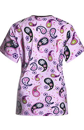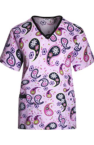 MedPro Women's Medical Scrub Set V-Neck Print Top and Cargo Pants Pink Paisley XL