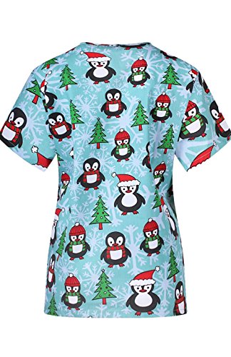 MedPro Women's Medical Scrub Set with Christmas Print V-Neck Top and Cargo Pants Sky Blue M