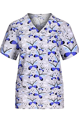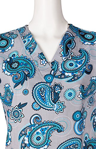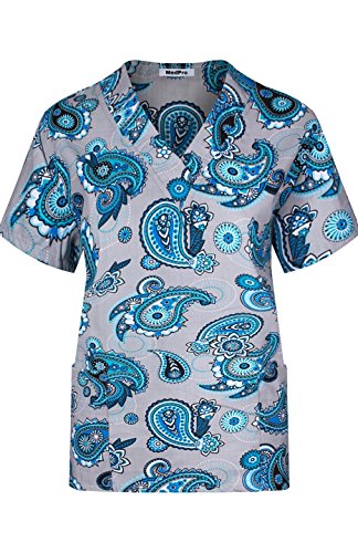 MedPro Women's Medical Scrub Set with Printed Wrap Top and Cargo Pants Gray & Blue S (9004-1022)
