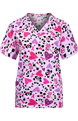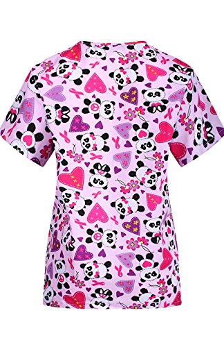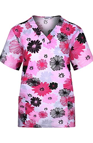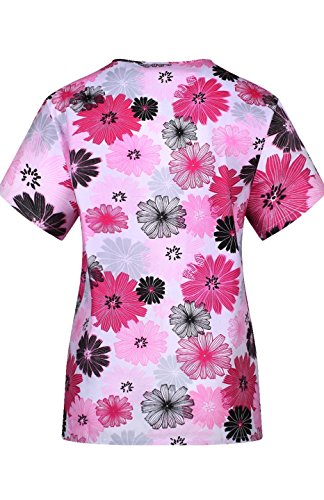 MedPro Women's Medical Scrub Set with Printed V-Neck Top and Cargo Pants Pink Black XL