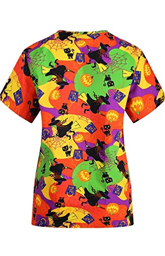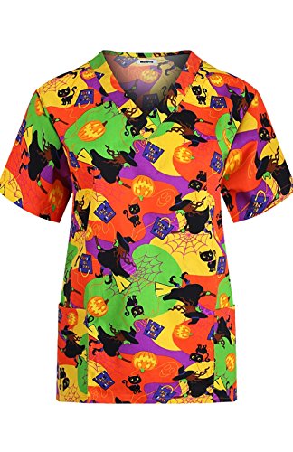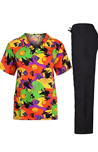 MedPro Women's Medical Scrub Set with Printed V-Neck Top and Cargo Pants Orange Green XL