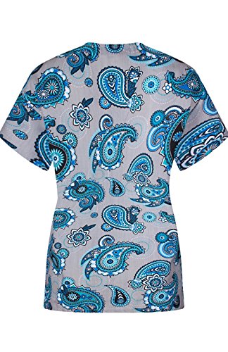 MedPro Women's Medical Scrub Set with Printed Wrap Top and Cargo Pants Gray & Blue XL (9004-1022)