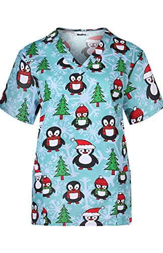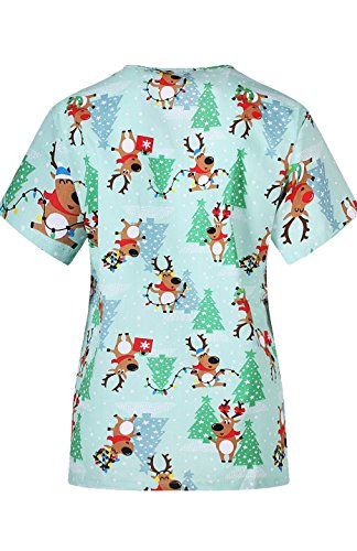 MedPro Women's Medical Scrub Set with Christmas Print V-Neck Top and Cargo Pants Green M