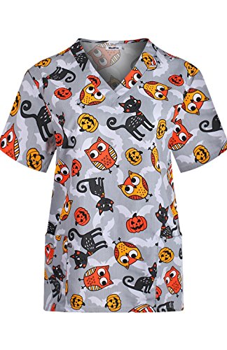 MedPro Women's Medical Scrub Set with Christmas Print V-Neck Top and Cargo Pants Grey L