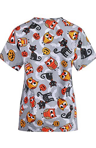 MedPro Women's Medical Scrub Set with Christmas Print V-Neck Top and Cargo Pants Grey XL
