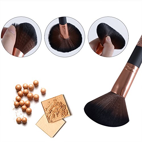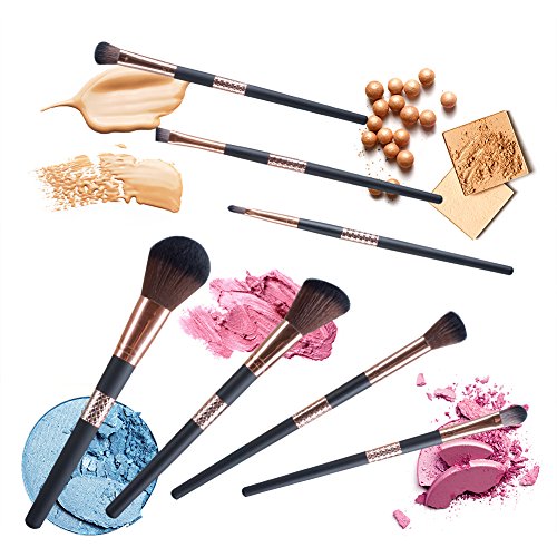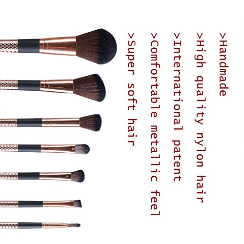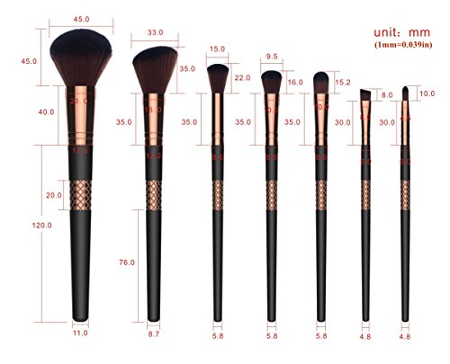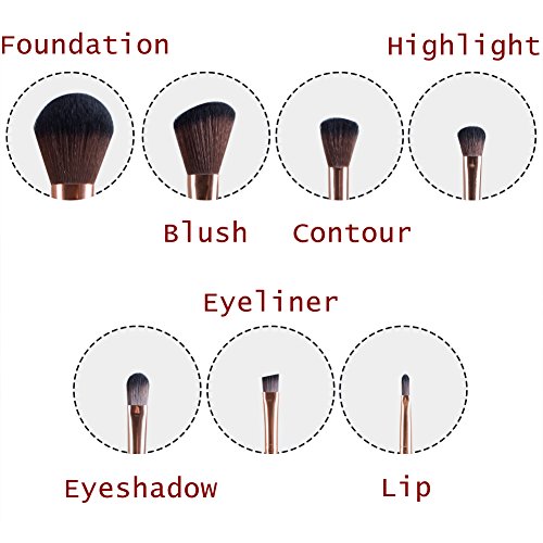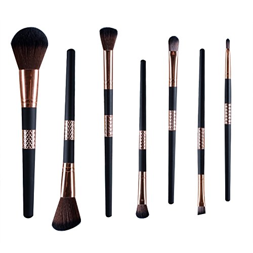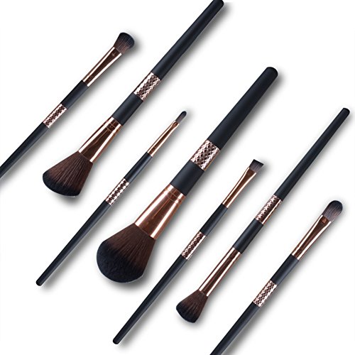 Makeup Brush Set of 7 Synthetic Bristle Kabuki Cosmetic Brush Set Face Eye Shadow Eyeliner Foundation Blush Lip Brushes Powder Liquid Cream Cosmetics Blending Tools (Gold)