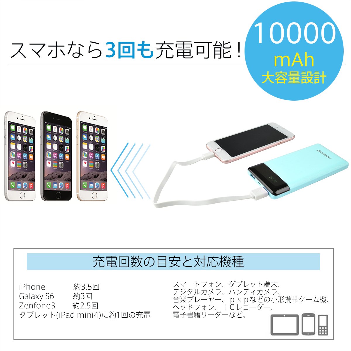 • Battery capacity: 10000 mAh (conversion rate approx. 75%)