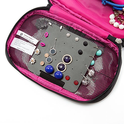 BAGSMART Travel Jewelry Organizer Storage Cases Jewelry Box for Earrings & Necklaces & Ring, Rose red