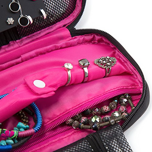 - Multiple compartments to storage small jewelry like earrings, rings, necklace bracelets, preventing them from tangle, keeping your luggage or handbag well organized.