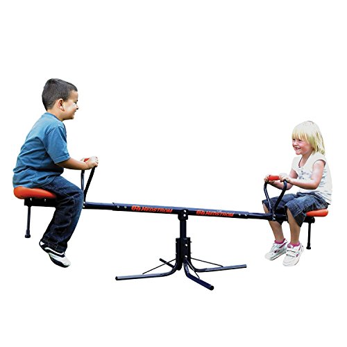 -. Feature : Chunky blow molded seats, Ages 3+ / Robust steel powder coated frame. / Assembled size: H60 x L194 centimeters / Orange and blue rotating seesaw / Fully rotates through 360 degrees
