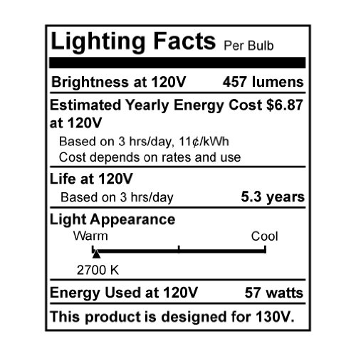 - Available in 120V(brighter light, less life) & 130V (dimmer light, longer life)