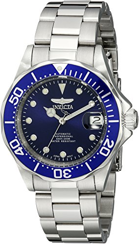 -. Binding : Watch -. Brand : Invicta -. Color : Silver & Blue -. Department : mens -. EAN : 0886678208555 -. Feature : Round watch with blue rotating bezel featuring screw-down crown, exhibition back, and magnified date window at three o'clock / 40 mm stainless steel case with mineral dial window / 24-jewel Japanese automatic movement with analog display / Stainless steel band with fold-over clasp with safety / Water resistant to 200 m (660 ft): In general, suitable for professional marine activity and serious surface water sports, but not scuba diving -. Label : Invicta -. Manufacturer : Invicta -. Model : 17040 -. MPN : 17040 -. PackageQuantity : 1 -. PartNumber : 17040 -. ProductGroup : Watch -. ProductTypeName : WATCH -. Publisher : Invicta -. Studio : Invicta -. Title : Invicta Men's 17040 Pro Diver Analog Display Japanese Automatic Silver-Tone Watch -. UPC : 886678208555