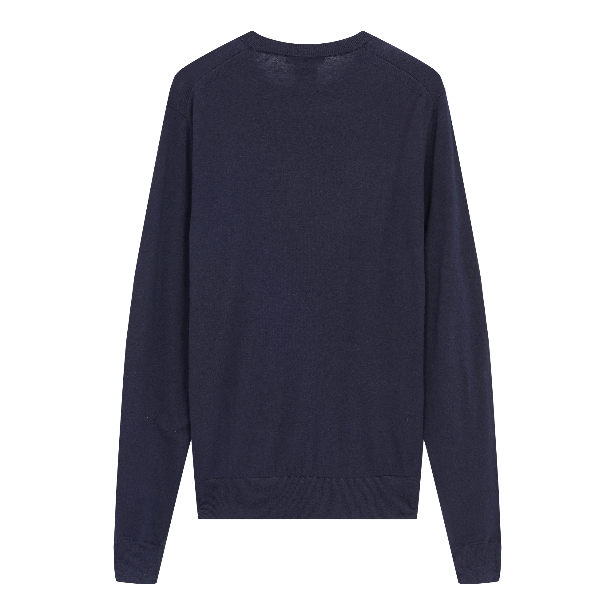 컬렉션 : 2017 Fall/Winter 디자인 포인트 : - 베이직한 디자인의 네이비 컬러 니트 티셔츠- 코튼/캐시미어 혼방 소재로 부드러운 터치감의 면 니트- 조금 높게 올라온 라운드 넥라인이 스타일리쉬한 느낌을 부여함 스타일링 추천 : 다양한 워싱의 데님 팬츠와 스니커즈에 매칭하여 댄디하면서도 데님으로 파격적인 포인트를 주는 스타일링 추천