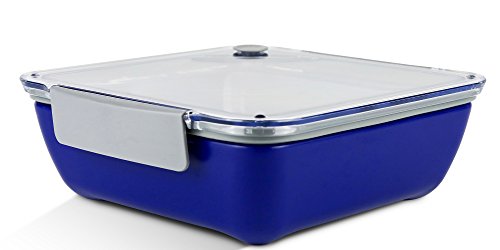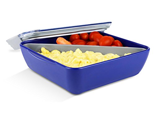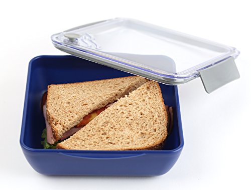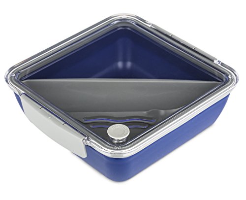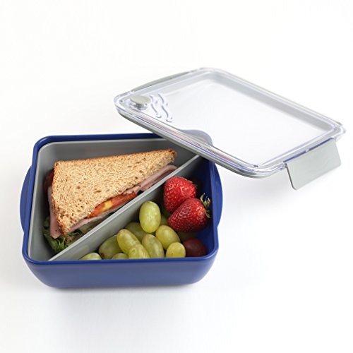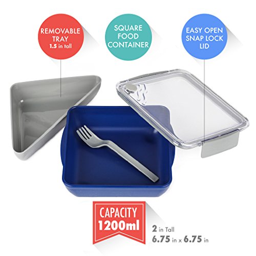 Zell Lunch Box with Compartment and Snap Lock Lid | Removable Compartment Tray Divider | BPA Free, Reusable Sandwich Box & Food Storage Container | For Kids & Adults | 6.75 x 6.75 x 2 in | Blue