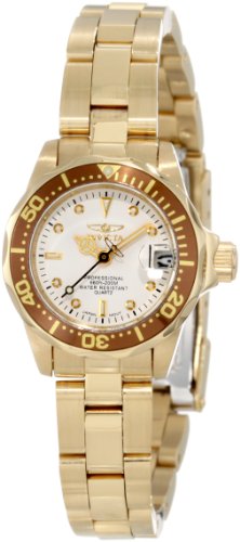-. Title : Invicta Women's 11444 Pro Diver Mini White Dial 18k Gold Ion-Plated Stainless Steel Watch