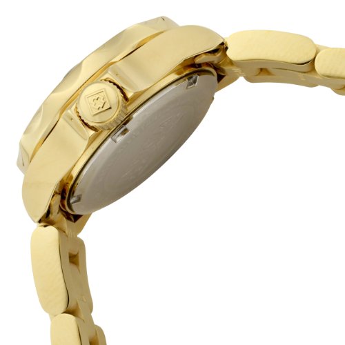 -. Feature : Japanese quartz movement / Mineral crystal; brushed and polished 18k gold ion-plated stainless steel case and bracelet / Magnified date window at 3:00 / White dial with gold tone hands and hour markers; luminous; unidirectional 18k gold ion-plated stainless steel bezel with brown ring / Water resistant to 660 feet (200 M): suitable for recreational scuba diving