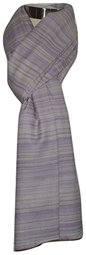 Binding : Apparel Product Description ITEM DESCRIPTION Handcrafted by artisans from Kashmir with Premium Quality Pashmina Wool fabric. This Scarf/Shawl is luxurious, super soft, warm, in beautiful Lavender Color Stripes, Very light weight and apt for any occasion. Never out of fashion. Dimensions: 80 Inches * 29 inches (Approximate) Maintenance: Dry Clean only. 0