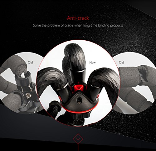 -1/4 universal camera screw can be connected directly with mirrorless digital camera and 360 panorama camera; -Mobile phone and Gopro camera can be used with included phone holder and Gopro adapter; -The legs can not break no matter how to twist it, and can fix its legs to any where tightly -The angle of the ball head can be adjusted by rotating the locking knob, allowing the camera and smartphone to adjust to the proper angle. -Flexible legs can change shape for all kinds of places by attach anywhere for better creativity. Such as be placed on a desk, table like a normal tripod, or work like an Octopus wrap the flexible legs around tree limbs, chain link fences, poles even on the handlebars and more.