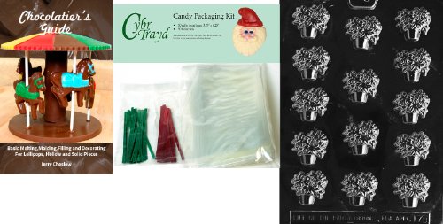 Cybrtrayd Pot of Poinsettias Chocolate Mold with Chocolatier's Bundle of 50 Cello Bags, 25 Green and 25 Red Twist Ties and Chocolatier's Guide