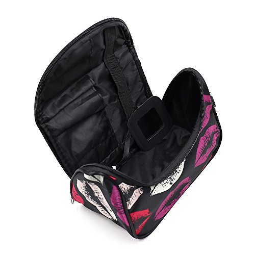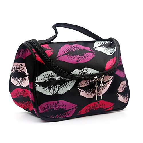 Zhi Jin 14 Style Cosmetic Printing Makeup Bag Organizer Waterproof Storage Handle Travel Bags Black Lips