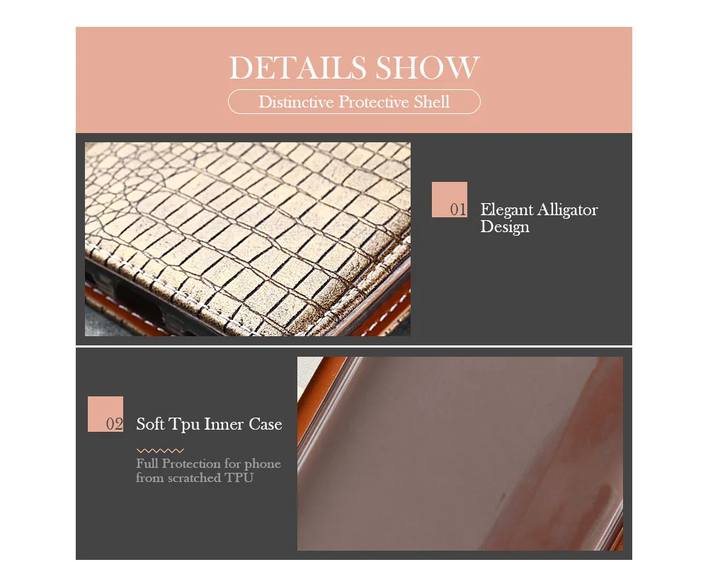Features:Crocodile pattern PU Leather Protective Housing Card Holder Para